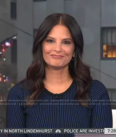 Darlene Rodriguez on Today on NBC was spotted wearing this black and blue striped dress on Today on Dec 22 2023's episode. Darlene's Dress is the Bleeker Dress by Shoshanna.