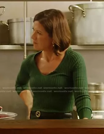 on Today on NBC was spotted wearing this green ribbed v-neck top on Today on Dec 26 2023's episode. 's Sweater is the V-neck Ribbed Knit Sweater in Green by Mango.