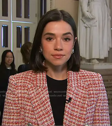 Julie Tsirkin on NBC News Daily on NBC was spotted wearing this red tweed blazer on NBC News Daily on Feb 03 2026's episode. Julie's Jacket is the Tailored Double-Breasted Blazer by Zara.