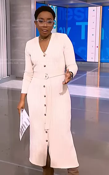 Great Jones Knit Midi Dress in Cream worn by Zinhle Essamuah on NBC News Daily