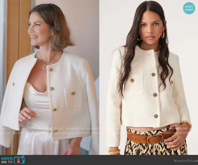 Julia Lemigova (played by Julia Lemigova) on The Real Housewives of Miami on Peacock was spotted wearing this white tweed jacket on The Real Housewives of Miami on episode 'Mamacita Madness Part 2' (6x10) in Jan 2024. Julia's Jacket is the Meredith Short Patch Pocket Jacket by Ba&sh.