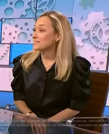 on NBC News Daily on NBC was spotted wearing this black puff sleeve blouse on NBC News Daily on Dec 29 2023's episode. 's Top is the Gillian Top by Frame.