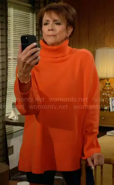Jordan's choice of the Edina sweater by Reiss in a bold orange hue on Y&R is a strategic fashion move that aligns with her emerging, potentially nefarious character. While the sweater itself may not be conventionally stunning, its luxurious cashmere blend and the loose, comfortable fit make it a subtly upscale choice. The striking color, almost a fiery red-orange, is a clear indication that Jordan is not a character to be overlooked or underestimated. This choice of apparel is more than just a wardrobe decision; it's a character cue, hinting at Jordan's boldness and perhaps her willingness to stand out and assert her presence in the complex world of Genoa City. Her bold orange turtleneck is a reflection of her character's intent to make an impact, blending comfort with a statement color that demands attention. This fashion choice on "The Young and the Restless" serves as a reminder that clothing can be a powerful tool in storytelling, setting the tone for a character's narrative arc and leaving a lasting impression on viewers.