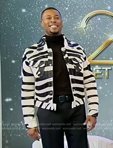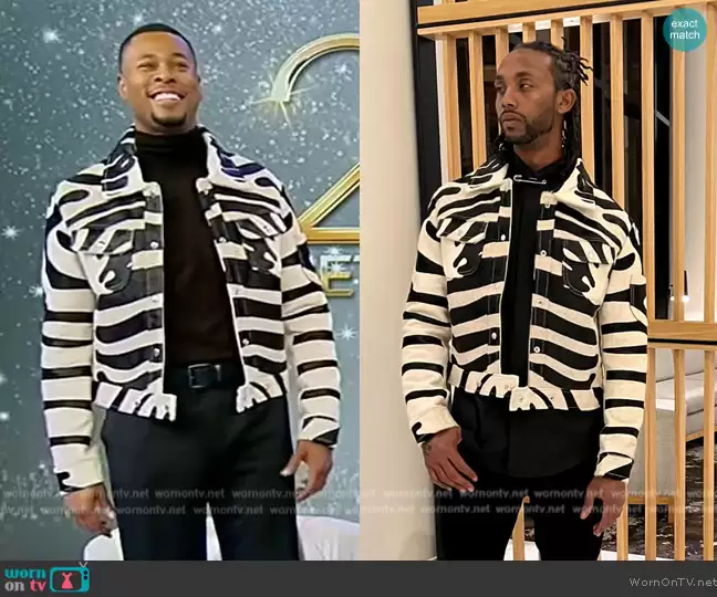 on Tamron Hall Show on ABC was spotted wearing this black and white striped jacket on Tamron Hall Show on Jan 02 2024's episode. 's Jacket is the Cropped Pony Hair Trucker Jacket by Grayscale.