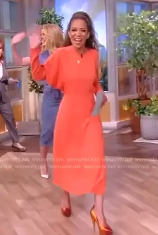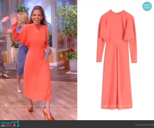 Sunny Hostin on The View on ABC was spotted wearing this coral long sleeve dress on The View on Jan 02 2024's episode. Sunny's Dress is the Dolman Midi Dress by Victoria Beckham.