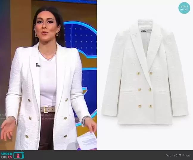 Zara Textured Blazer in Ecru worn by Erielle Reshef on Good Morning America