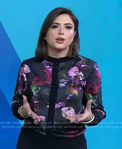 Chloe Melas on Today on NBC was spotted wearing this floral print jacket on Today on Jan 03 2024's episode. Chloe's Jacket is the Printed Woven Front Cardigan by Ted Baker.