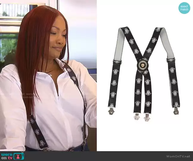 Garcelle Beauvais on The Real Housewives of Beverly Hills on Bravo was spotted wearing this black medusa print suspenders on The Real Housewives of Beverly Hills on episode 'Re-Lentless Erika' (13x10) in Jan 2024. Garcelle's Suspenders is the Medusa Suspenders by Versace.