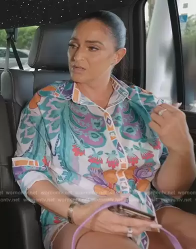 (played by ) on The Real Housewives of Miami on Peacock was spotted wearing this Floral print top and short set on The Real Housewives of Miami on episode 'Mamacita Madness Part 2' (6x10) in Jan 2024. 's Set is the Two Piece Top and Short Set.