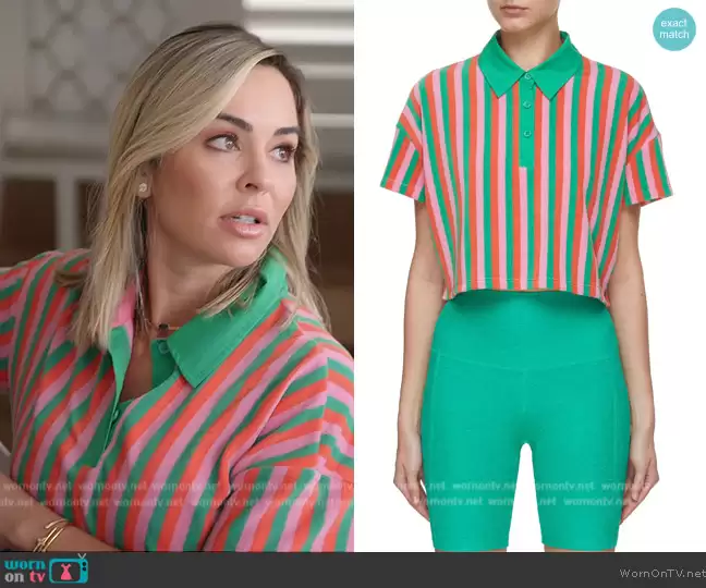 Nicole Martin (played by Nicole Martin) on The Real Housewives of Miami on Peacock was spotted wearing this striped polo and mini skirt on The Real Housewives of Miami on episode 'Mamacita Madness Part 2' (6x10) in Jan 2024. Nicole's Top is the Willa Top by Beach Riot . Nicole's Skirt is the Cape Tennis Skirt by Beach Riot.