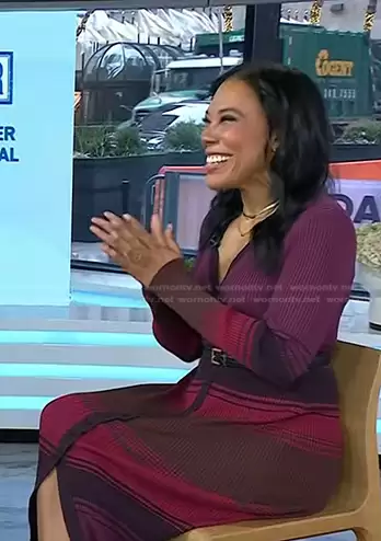 on Today on NBC was spotted wearing this red striped ribbed dress on Today on Jan 04 2024's episode. 's Dress is the Shoko Striped Cardigan Midi Dress by Staud.