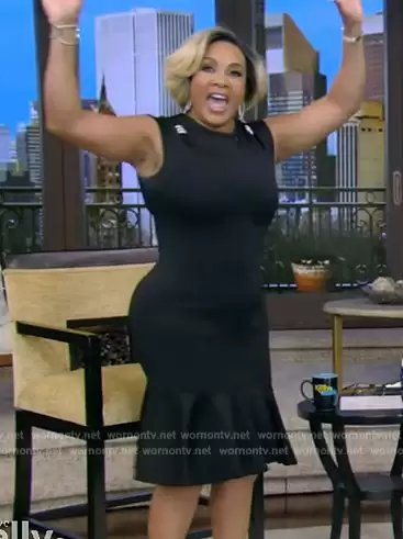 on Live with Kelly and Mark on Disney ABC Home Entertainment was spotted wearing this black ruffle hem dress on Live with Kelly and Mark on Jan 08 2024's episode. 's Dress is the Flounce Midi Dress with Embellished Shoulder Detail by Givenchy.