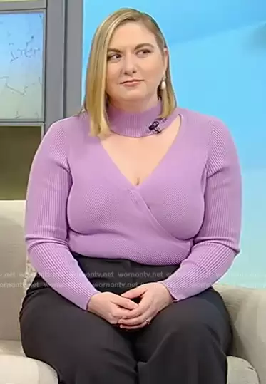 on Tamron Hall Show on ABC was spotted wearing this lilac cutout sweater on Tamron Hall Show on Jan 08 2024's episode. 's Sweater is the Reversible Sweater in Lilac by Milly.