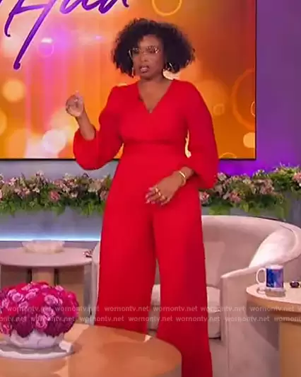 Jennifer Hudson on The Jennifer Hudson Show on FOX was spotted wearing this red wrap jumpsuit on The Jennifer Hudson Show on Jan 08 2024's episode. Jennifer's Jumpsuit is the Poet wrap-effect gathered crepe wide-leg jumpsuit by Diane Von Furstenberg.