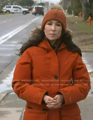 on NBC News Daily on NBC was spotted wearing this orange shearling parka on NBC News Daily on Jan 09 2024's episode. 's Coat is the Maine Mountain Parka by L.L. Bean.