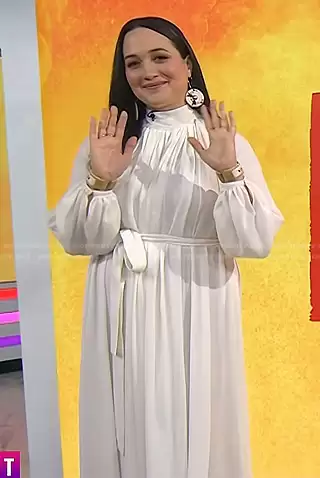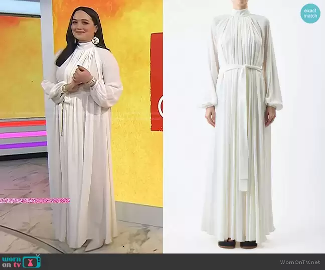 on Today on NBC was spotted wearing this white pleated maxi dress on Today on Jan 11 2024's episode. 's Dress is the Cedric Dress in Silk Georgette by Gabriela Hearst.