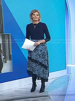 on Today on NBC was spotted wearing this navy top and floral midi skirt on Today on Jan 11 2024's episode. 's Sweater is the Basic Knit Sweater in Navy by Zara . 's Skirt is the Juliet Bohemian Midi Skirt by Zadig & Voltaire.
