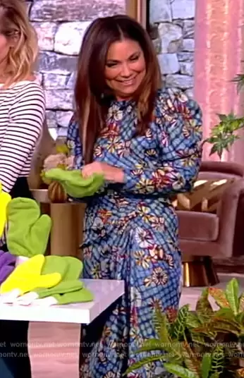 on The View on ABC was spotted wearing this blue floral print gathered dress on The View on Jan 12 2024's episode. 's Dress is the Amalie Dress Azul by Ulla Johnson.