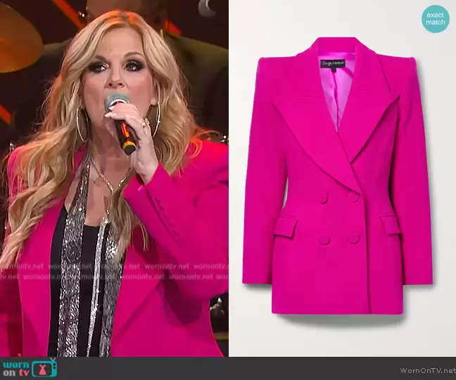 Sergio Hudson Double-breasted wool blazer worn by Trisha Yearwood on The Kelly Clarkson Show