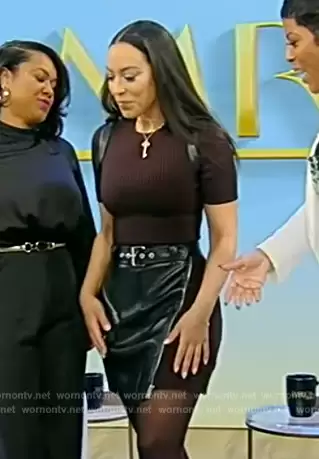 Simkhai Anisa Belted Knit Combo Mini Dress worn by Angela Rye on Tamron Hall Show