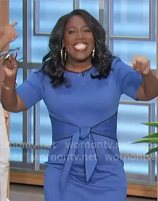 Sheryl Underwood on The Talk on CBS was spotted wearing this blue tie waist dress on The Talk on Jan 16 2024's episode.