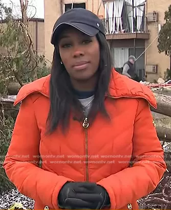 on NBC News Daily on NBC was spotted wearing this orange down coat on NBC News Daily on Feb 28 2024's episode. 's Coat is the Quilted Coat by Michael Kors.