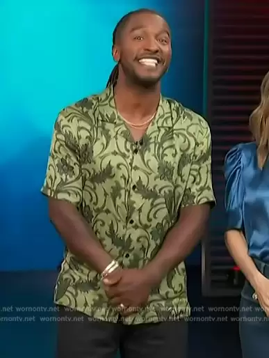 Scott Evans on Access Hollywood on NBC was spotted wearing this green floral print shirt on Access Hollywood on Jan 17 2024's episode. Scott's Shirt is the Printed Shirt by The Kooples.
