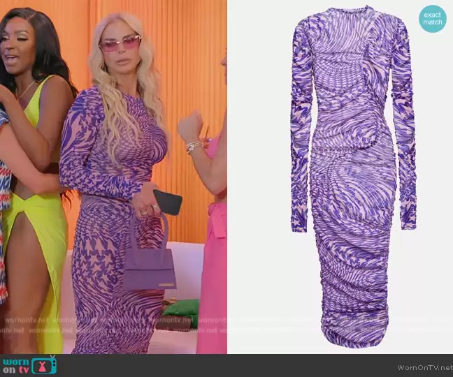Alexia Echevarria (played by Alexia Echevarria) on The Real Housewives of Miami on Peacock was spotted wearing this purple star mesh dress on The Real Housewives of Miami on episode 'Sink or Swim' (6x12) in Jan 2024. Alexia's Dress is the Star Mesh midi dress by Mugler.