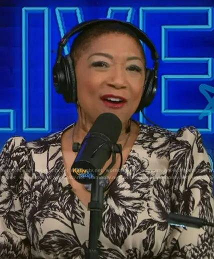 Deja Vu on Live with Kelly and Mark on Disney ABC Home Entertainment was spotted wearing this floral print mini dress on Live with Kelly and Mark on Sep 18 2024's episode. Deja Vu's Dress is the V-Neck Empire-Waist Printed Dress by Calvin Klein.