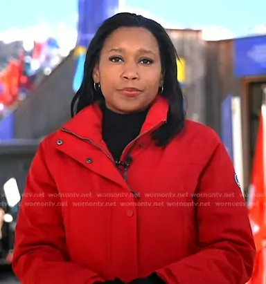 Rachel Scott on Good Morning America on ABC was spotted wearing this red down coat on Good Morning America on Jan 21 2026's episode. Rachel's Coat is the Expedition Down Waterproof Winter Parka with Removable Hood by Land's End.