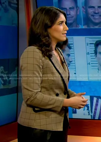 Halogen Windowpane Fringe Trim Double Breasted Blazer worn by Liz Kreutz on NBC News Daily