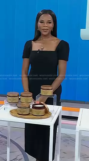 on Today on NBC was spotted wearing this black square neck dress and pumps on Today on Jan 19 2024's episode. 's Dress is the Elvie Short Sleeve Sheath Dress by A.L.C. . 's Shoes is the Single Rockstud Pumps by Valentino Garavani.