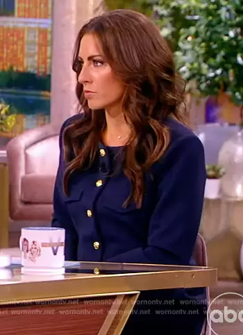 Alyssa Farah Griffin on The View on ABC was spotted wearing this blue button front jacket on The View on Jan 23 2024's episode. Alyssa's Jacket is the Kensington Knit Jacket by Veronica Beard.