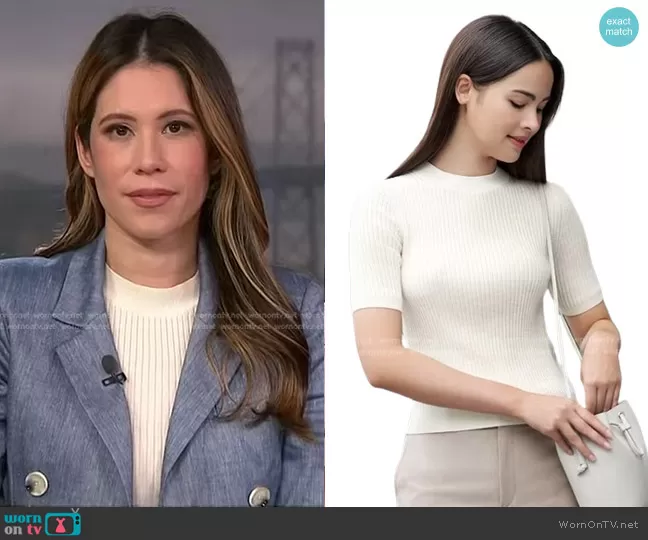 Deirdre Bosa on NBC News Daily on NBC was spotted wearing this Deirdre Bosa’s chambray roll up sleeve blazer on NBC News Daily on Jan 24 2024's episode. Deirdre's Sweater is the Extra Fine Merino Ribbed Mock Neck Sweater by Uniuqlo . Deirdre's Jacket is the Kelson Dickey Jacket by Veronica Beard.