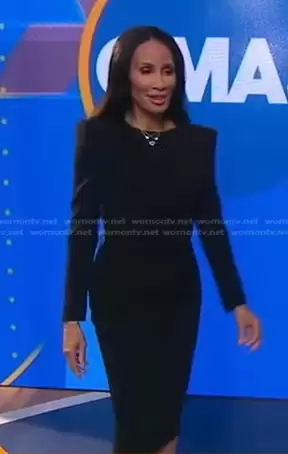 on Good Morning America on ABC was spotted wearing this black sheath dress on Good Morning America on Jan 24 2024's episode. 's Dress is the Signature Crepe Midi Dress by Sergio Hudson.