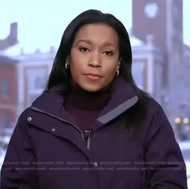 Rachel Scott on Good Morning America on ABC was spotted wearing this purple jacket on Good Morning America on Jan 26 2024's episode. Rachel's Jacket is the Expedition Down Waterproof Winter Parka with Removable Hood in Blackberry by Land's End.
