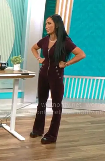Elizabeth Werner on CBS Mornings on CBS was spotted wearing this burgundy jumpsuit on CBS Mornings on Oct 16 2025's episode. Elizabeth's Jumpsuit is the Helena Velveteen Jumpsuit by Ramy Brook .