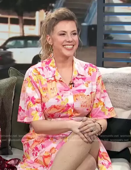 on Access Hollywood on NBC was spotted wearing this pink floral print shirtdress on Access Hollywood on Jan 25 2024's episode. 's Dress is the Arianna Maxi Dress by Petal + Pup.