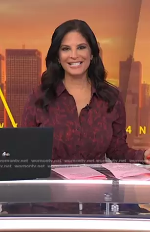 Darlene Rodriguez on Today on NBC was spotted wearing this burgundy floral shirtdress on Today on Jan 26 2024's episode. Darlene's Dress is the Floral Shirt Dress in Red by Thakoon Collective.