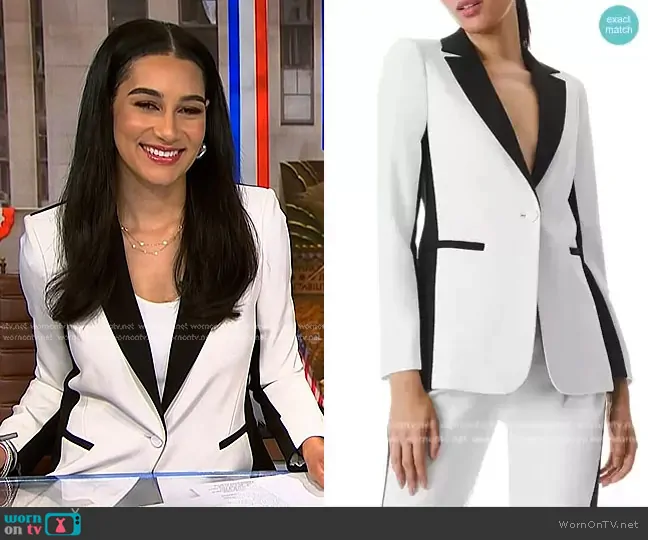 Morgan Radford on NBC News Daily on NBC was spotted wearing this white contrast blazer by NBC News Daily on Nov 05 2024's episode. Morgan's Blazer is the Macey Blazer by Alice + Olivia.