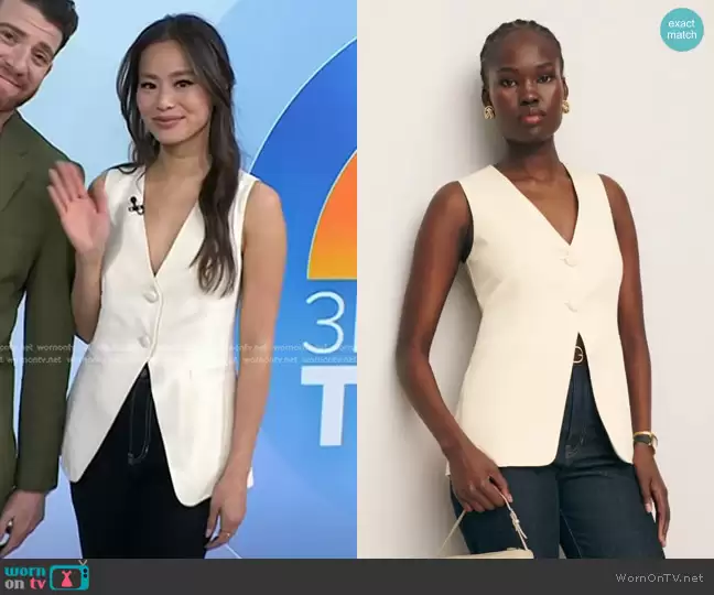on Today on NBC was spotted wearing this white vest on Today on Jan 26 2024's episode. 's Vest is the Casey Vest in Sugar by Reformation . 's Shoes is the Isa Leather Ankle Boots by Wandler.