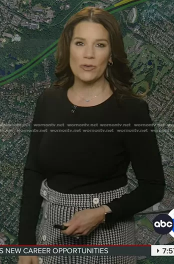 Heather O’Rourke on Good Morning America on ABC was spotted wearing this long sleeve houndstooth dress on Good Morning America on Jan 30 2024's episode.