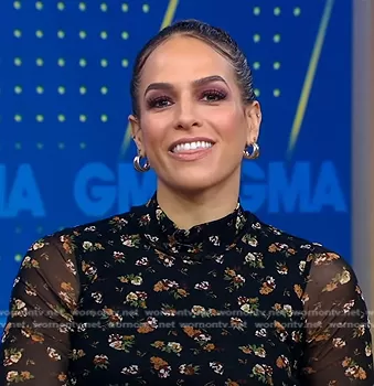 on Good Morning America on ABC was spotted wearing this Jess Sims’ black floral mesh dress on Good Morning America on Jan 30 2024's episode. 's Dress is the Kruz Midi Dress by Heartloom.