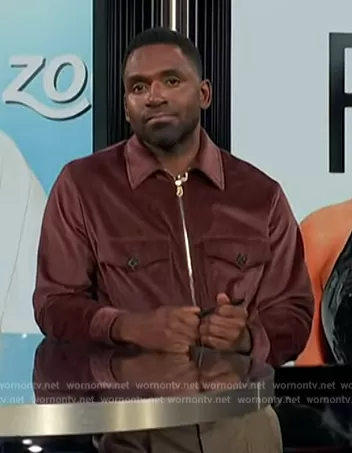 Justin Sylvester on E! News on E! was spotted wearing this burgundy zip front jacket on E! News on Jan 30 2024's episode. Justin's Jacket is the Cotton Regular Fit Zip Front Jacket by PS Paul Smith.
