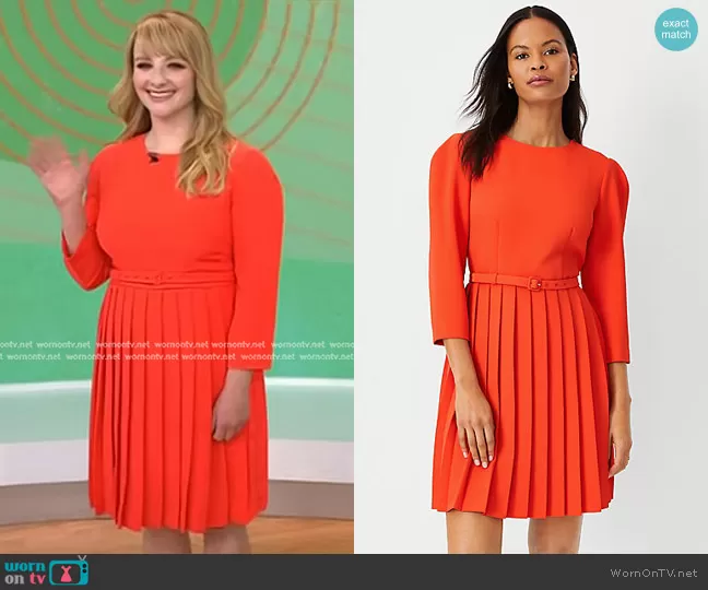 Ann Taylor Pleated Belted Flare Dress in Grenadine Punch worn by Melissa Rauch on Today