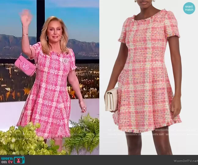 on The Jennifer Hudson Show on FOX was spotted wearing this pink tweed plaid dress on The Jennifer Hudson Show on Jan 31 2024's episode. 's Dress is the Fringed checked tweed minidress by Oscar de la Renta.
