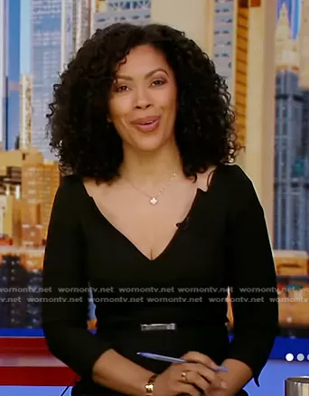 Shirleen Allicot on Good Morning America on ABC was spotted wearing this black belted v-neck dress on Good Morning America on Jan 31 2024's episode. Shirleen's Dress is the Forever Bar Belt Dress by Karen Millen.