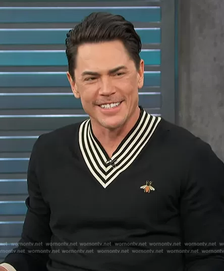 on Access Hollywood on NBC was spotted wearing this black bee embroidered sweater on Access Hollywood on Jan 31 2024's episode. 's Sweater is the Bee Applique Sweater by Gucci.