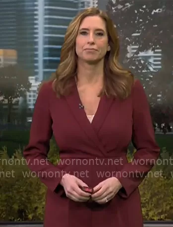 Stephanie Abrams on CBS Mornings on CBS was spotted wearing this Stephanie Abrams’ red jumpsuit on CBS Mornings on Feb 01 2024's episode. Stephanie's Jumpsuit is the Twill Long Sleeve Blazer Jumpsuit by Express .