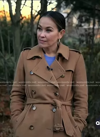 Eva Pilgrim on Good Morning America on ABC was spotted wearing this brown wool trench coat on Good Morning America on Feb 02 2024's episode. Eva's Coat is the The Kensington Trench Coat by Burberry.